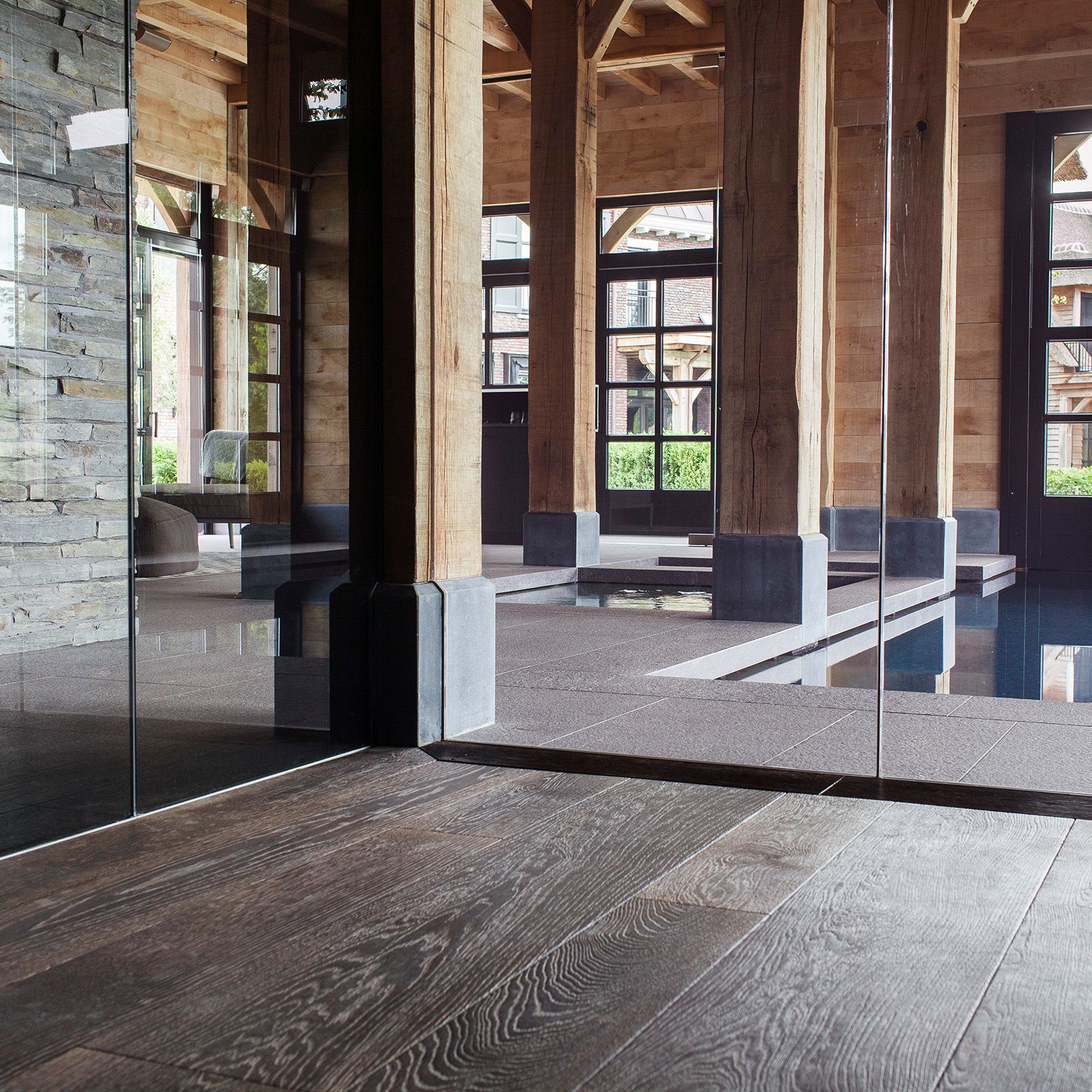 Pre-finished by hand, our Megève effect makes the Oak surface denser and harder, revealing a deeply textured grain with lively accents and moderate variation in colour and structure. This finish works best on long, wide planks in random widths for floors and walls.