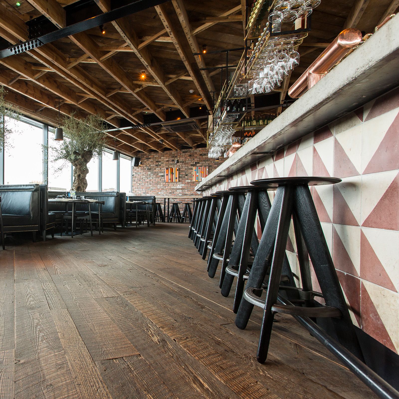Cut from the heart section of the tree, this grade shows a mix of boards with beautiful heart cracks and boards with more varied presence of "cathedral" or "crown grain" close from the core of the tree, with smaller and larger knots. The open "defects" are filled by hand, to look natural and organic.