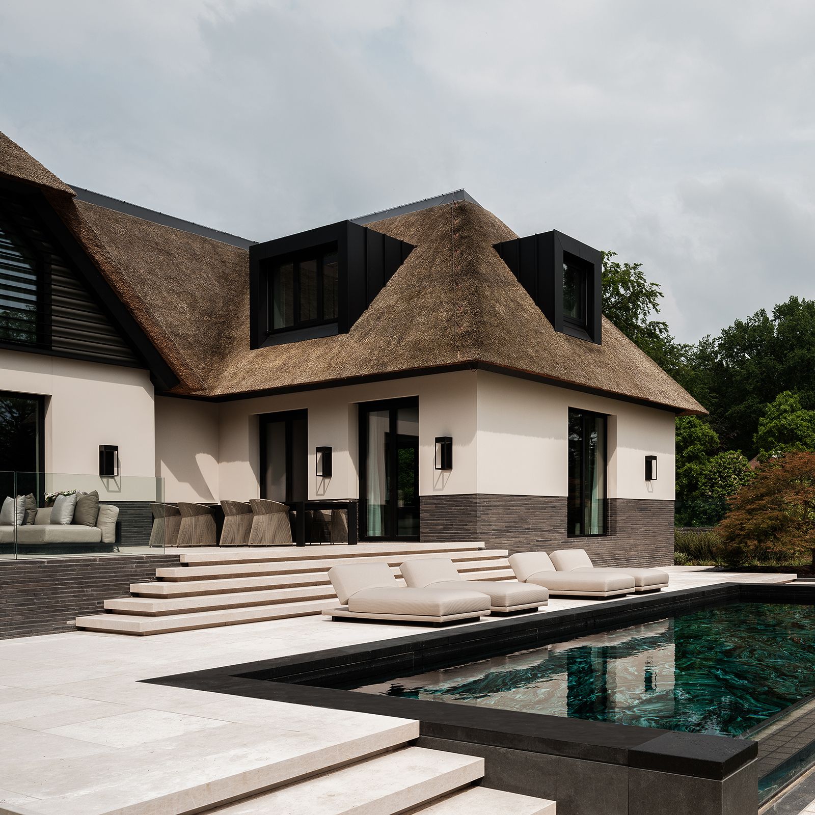 Known for the refined and detailed interiors, Creative Director Rolan Cornelissen of Studio Eric Kuster, transformed this villa into a symphony of light and structure. The design is marked by its integration of exterior and interior elements, creating a cohesive and harmonious living space.