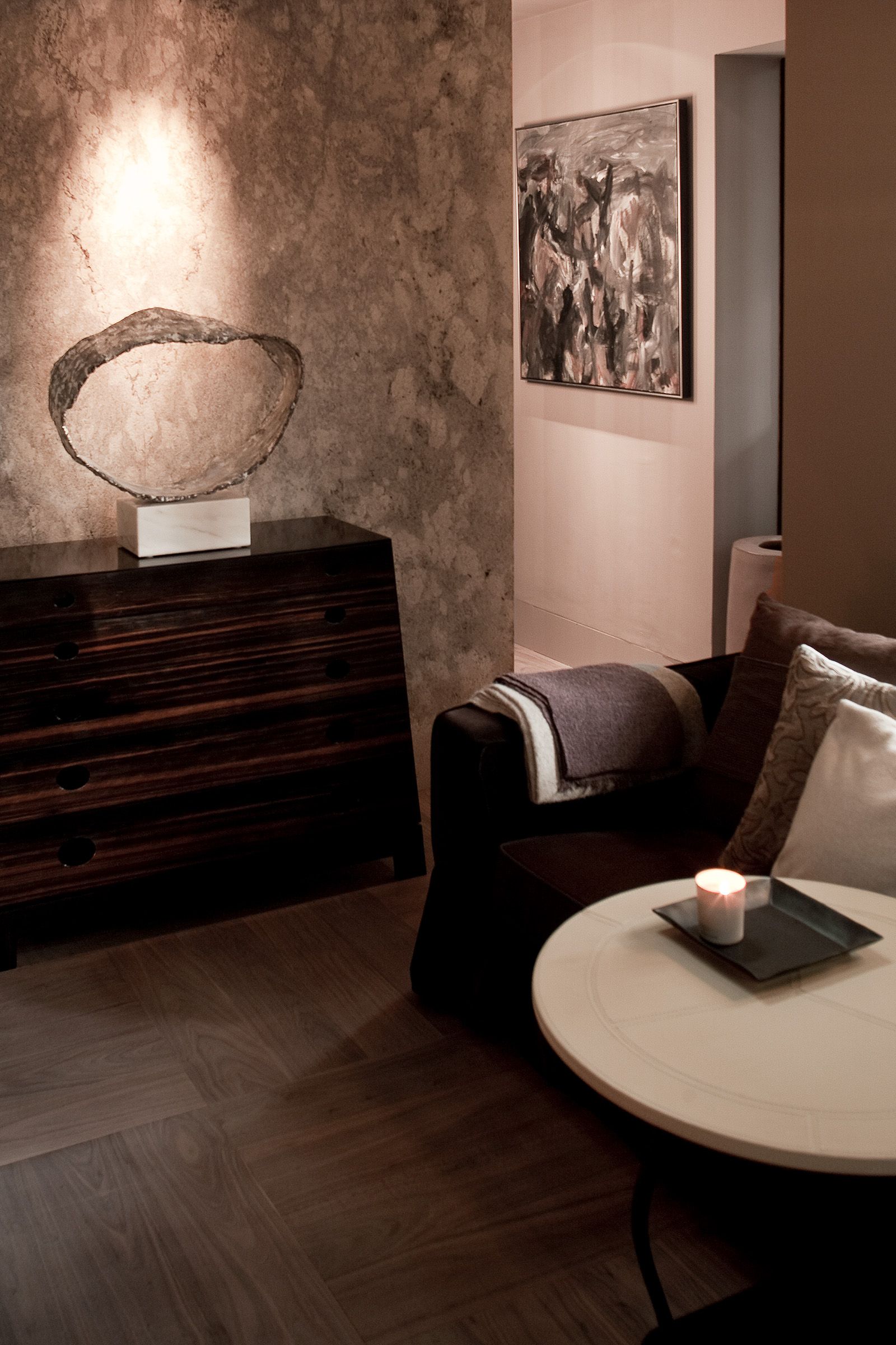 This project showcases Marcel Wolterinck’s ability to harmonize luxury with natural elements, using American Walnut and Barnwood to create a space that is both inviting and timeless.