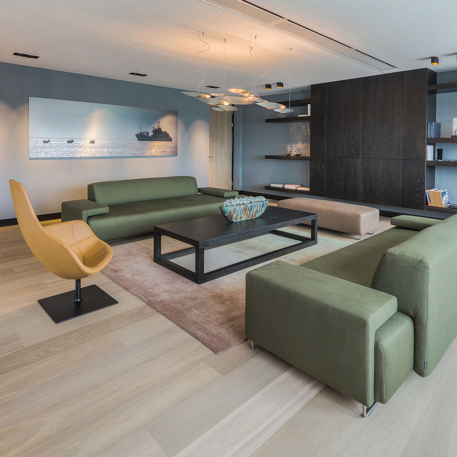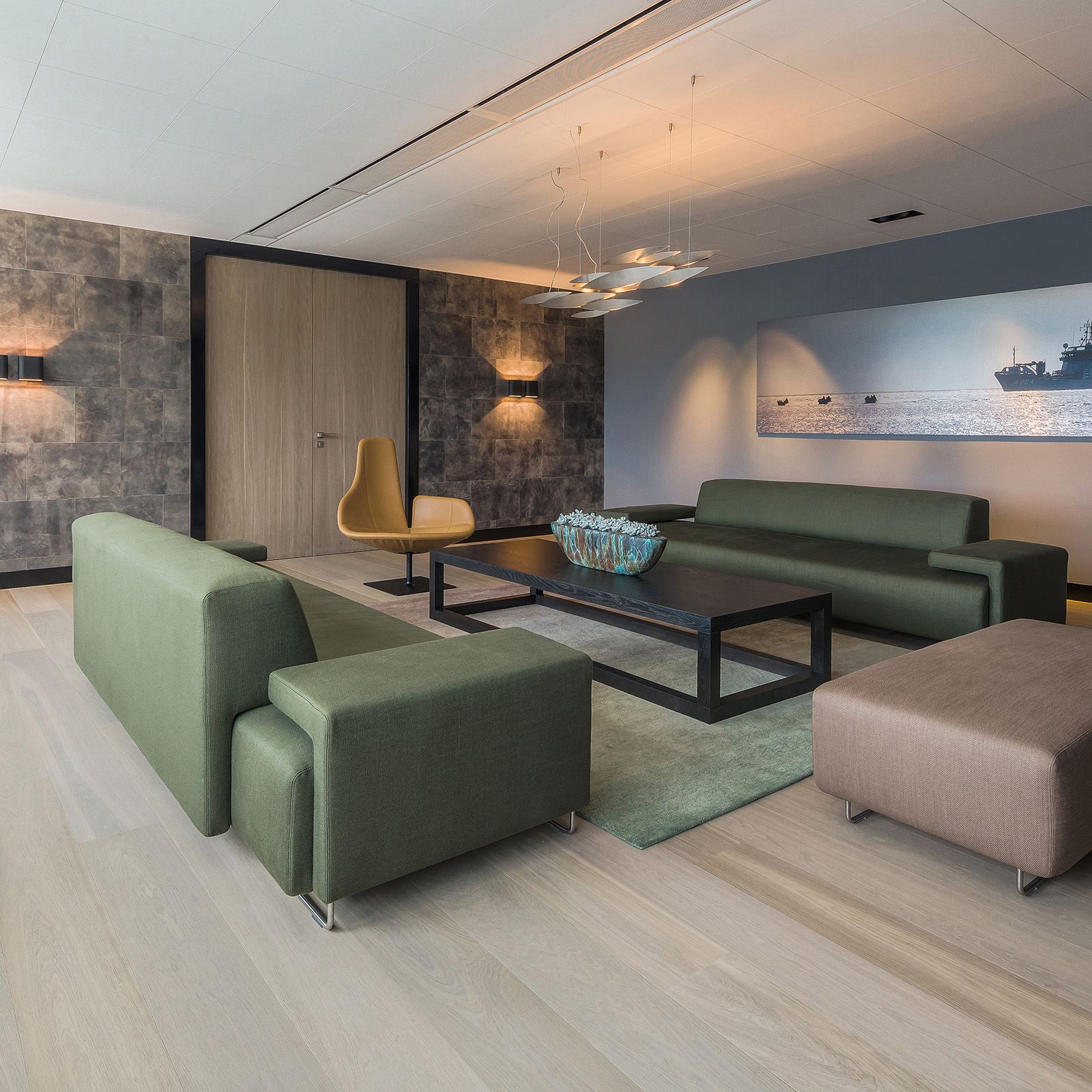 The Damen Shipyard Head Office in Gorinchem, The Netherlands, exudes a clean and sophisticated atmosphere, reflected in the choice of materials and finishes.