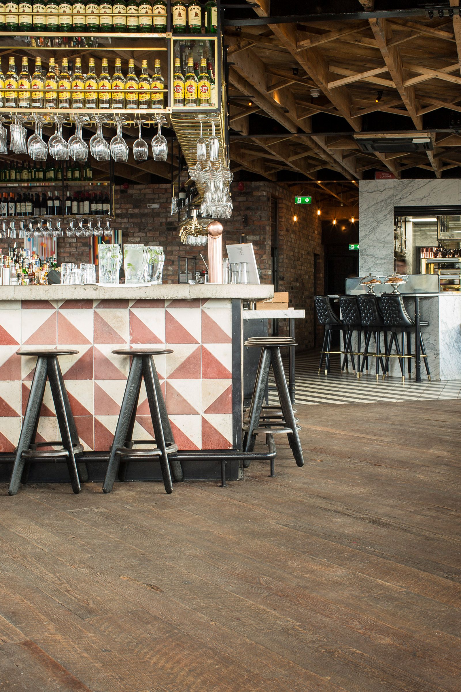 The rooftop bar could just as well be in Brooklyn, and sets the trend. Not surprisingly we were asked, we had to bring original beam-skin cuts to produce an authentic all-American floor that only gain more character over time.