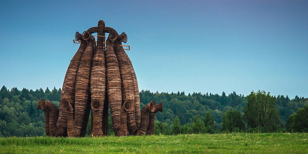 Each year, thousands of people head over to a small Russian village about 220 kilometres southwest of Moscow. On the banks of the river Ugra, they admire giant sculptural installations, land art and architecture. The artistic, massive and sometimes intimidating structures have one thing in common: they are all made of natural materials such as wood, plants or soil.