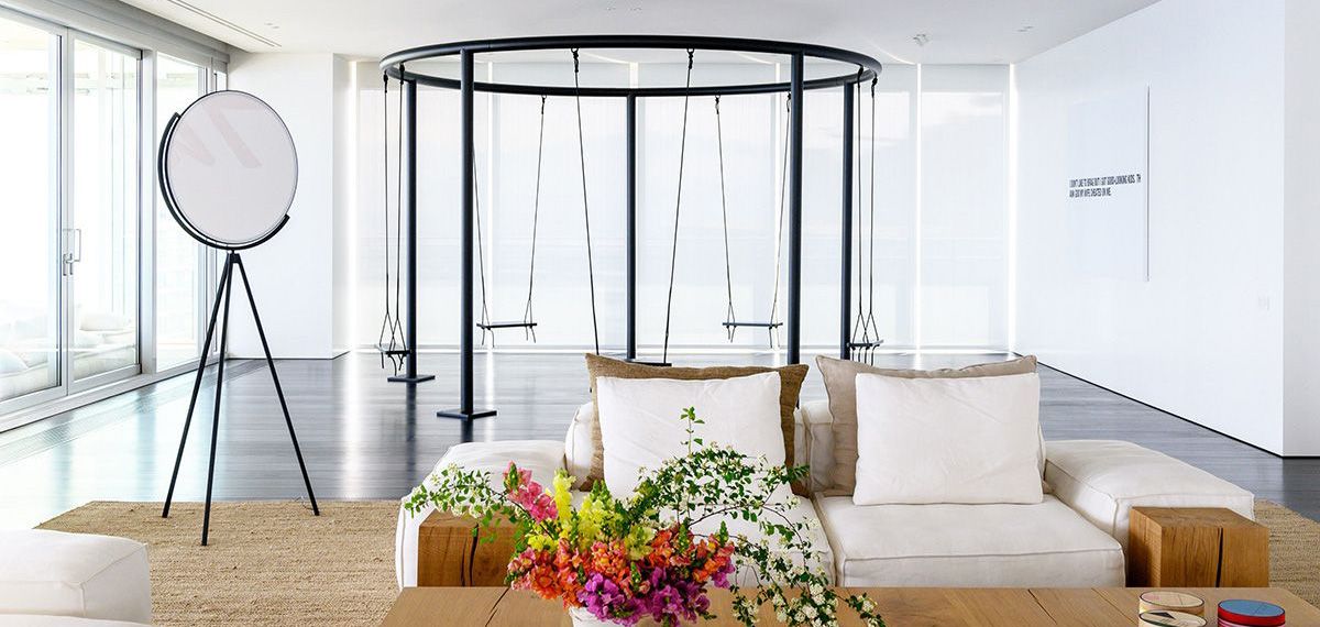 Fashion designer Mira Mikati has a sunny outlook on life. This expression enchants her apartment which is located on the 25th floor in a polished, modern building in central Beirut decorated with extraordinary furniture, art and silky deep black floor from Ebony and Co.
