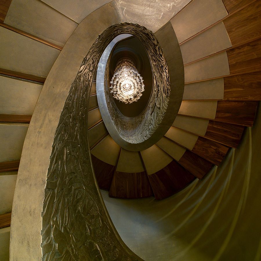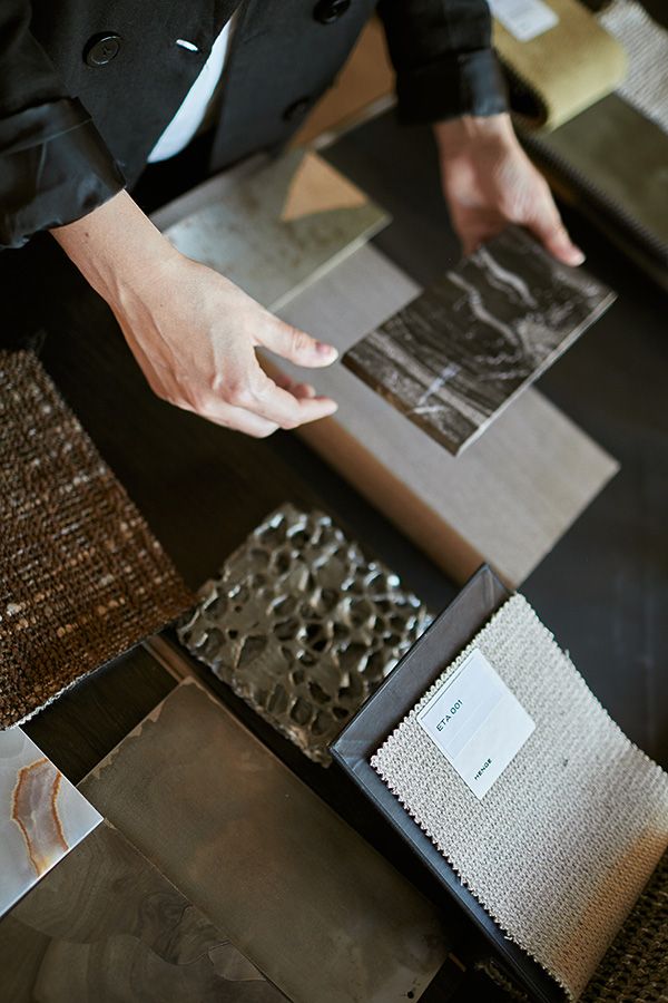 An essential aspect of achieving the desired ‘seamless’ result is the joints between stone and wood, Stupenko’s quick to point out. ‘We usually insert a thin strip of metal to decorate the seam, both in the plane of the floor and on the walls. Another technique for vertical surfaces is laying in different planes, creating a three dimensional pattern.’
