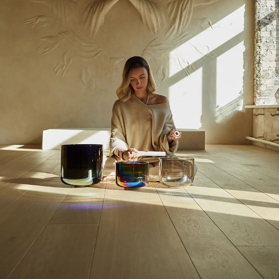 One of the main ideas behind the Ashram is to have a space where we can share the unique knowledge, in multiple directions and by different masters, with many people. It’s a place where you can truly get to know yourself through using your body — by practicing yoga, qigong, various bodily practices. We are now introducing nailing (standing on nails) and deep body engagement, where you focus is on your feelings and inner state: meditation, lithotherapy, sound therapy, breathing practices, Aura-Soma, and many other ways to hear yourself. It’s all about self-understanding. We also have a lecture hall where we invite creative people from different directions, from artists to scientists, who explain and talk about our different reactions and perceptions. I put my entire soul into the Ashram, and all places I have visited are reflected in the studio. India, Bali, Los Angeles, Brazil, Mexico, Africa, Egypt, Asia, and the East all came together in one single space.