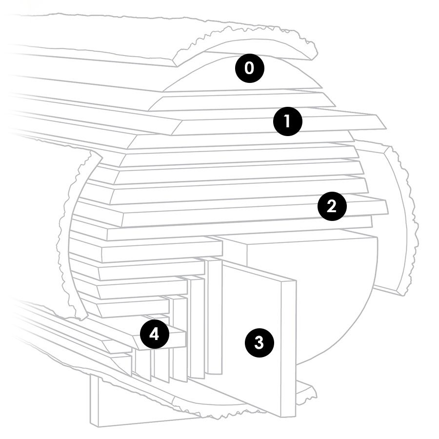 Whether we are handpicking beautiful solid heart-cuts of oak or live sawn walnut top layers, we always look for the lower part. The first six metres (18 ft) of the tree shows fewer ingrown branches, which means fewer knots. For exceptionally long boards, we seek those rare trees that are both taller and wider and have branched out higher in the tree’s early life.
