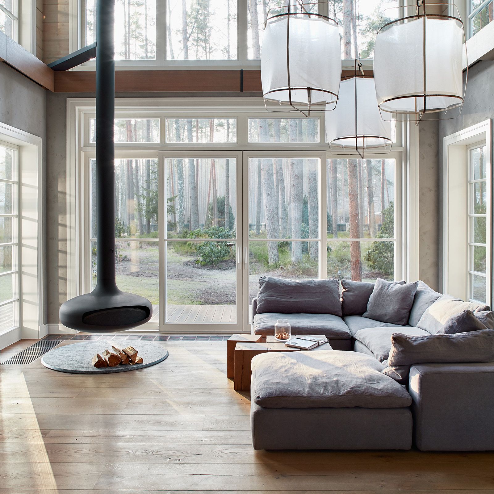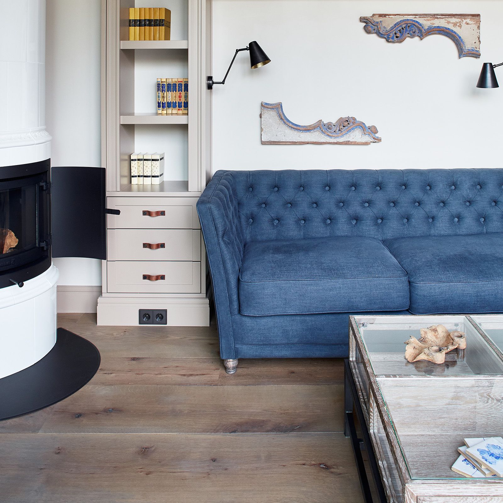A beautiful example of such a floor that combines Antique White Oak and new Vintage-sawn Oak boards with an antique wood character is this holiday house by Studio Caché in Latvia.