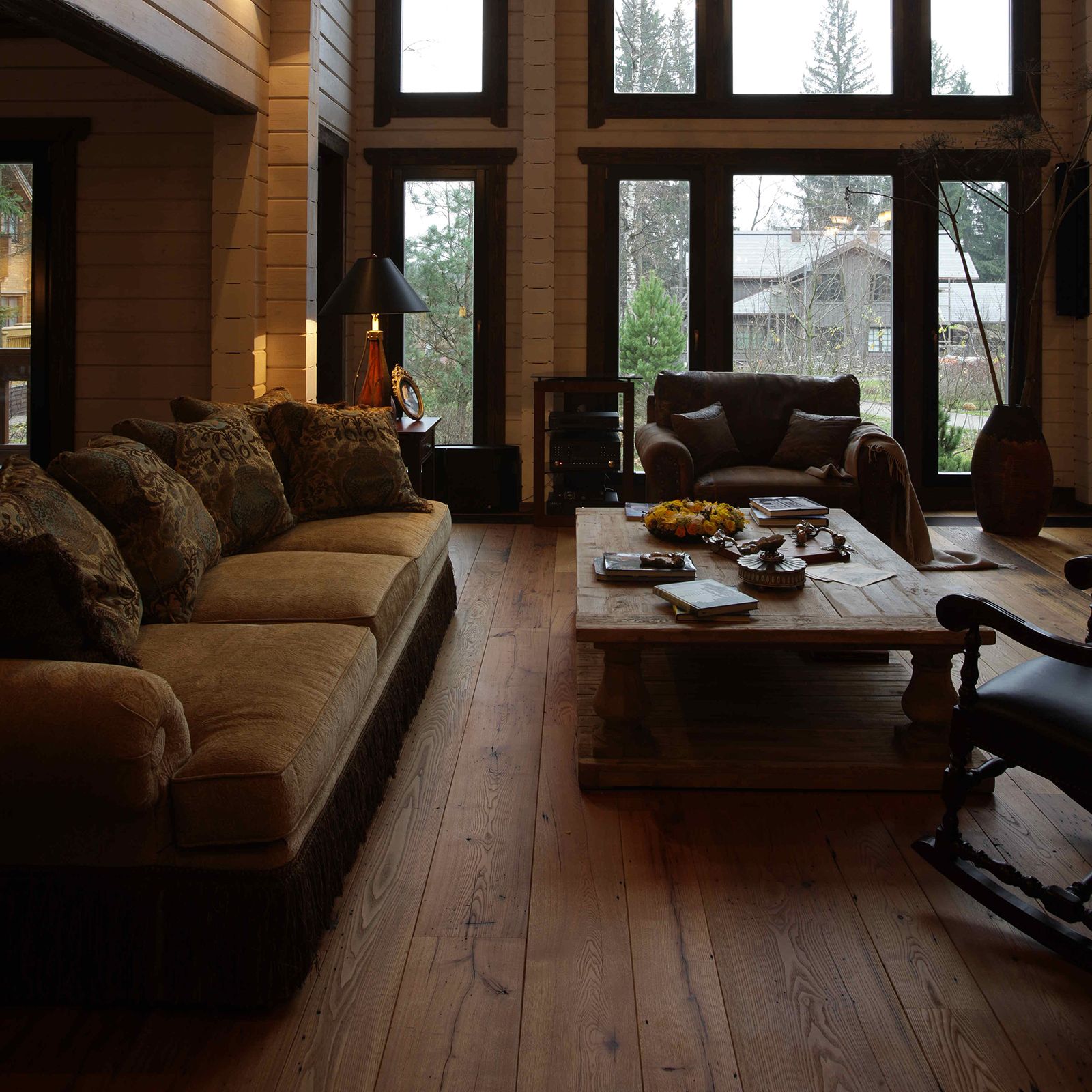Paired with our Faded Ultramatt Poly finish, Oak creates a soft, natural look ideal for large open spaces and doesn’t show yellowing under the strong sunlight in the mountains. Our “Organic Country Vintage” grade in Oak is an option that adds a rustic and robust touch to the interior with organic cracks and knots, reminiscent of reclaimed old beams.